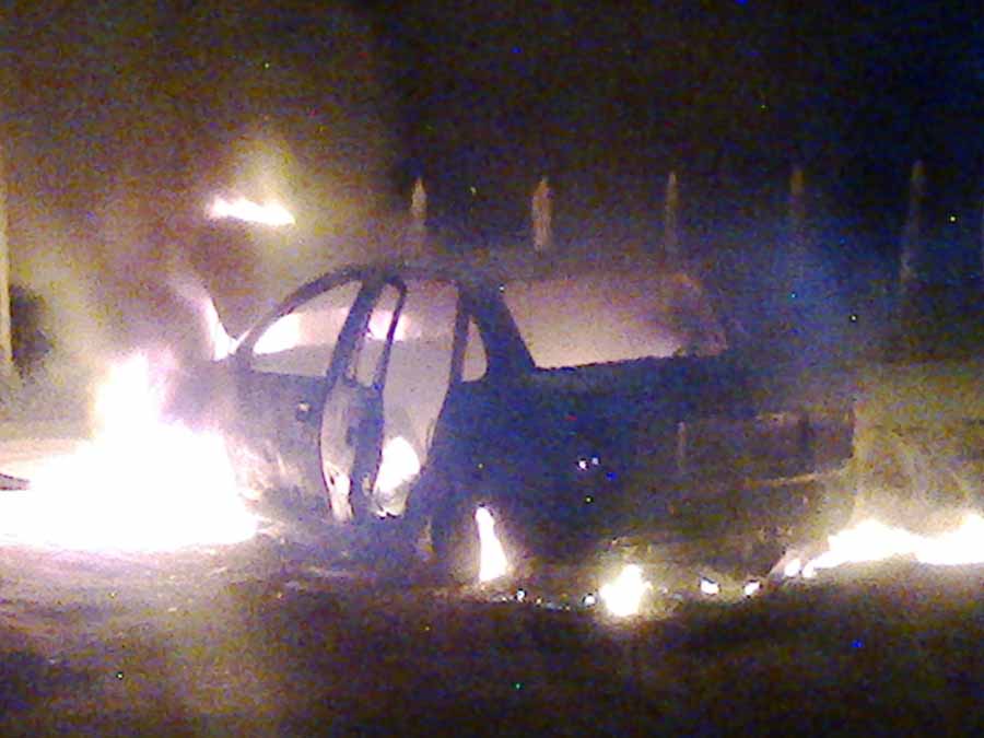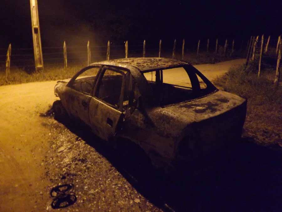 O veiculo ficou totalmente destruído e dava sinais do incêndio