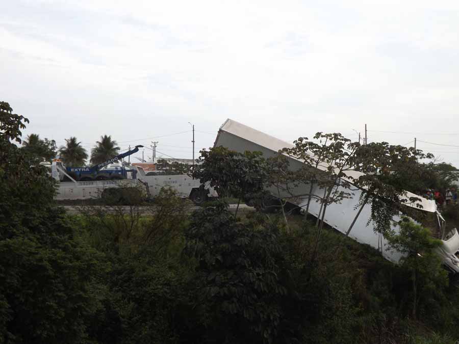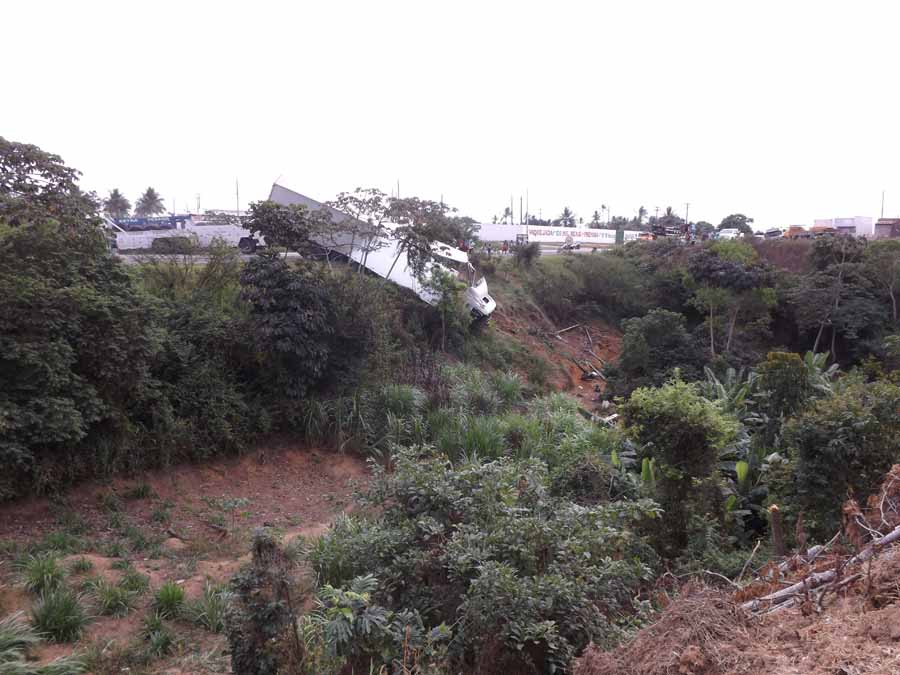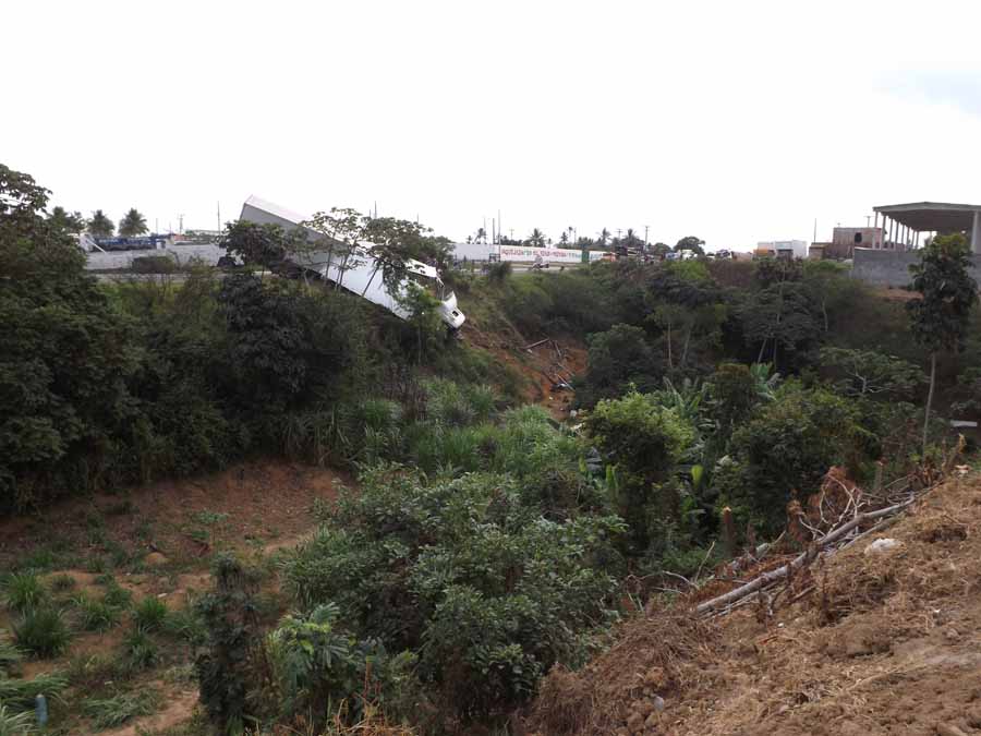 O local onde o caminhão caiu é pouco antes da entrada da Volta, uma depressão bem a margem da BR-101, ao lado da Mondial.