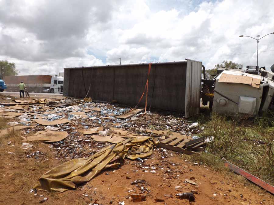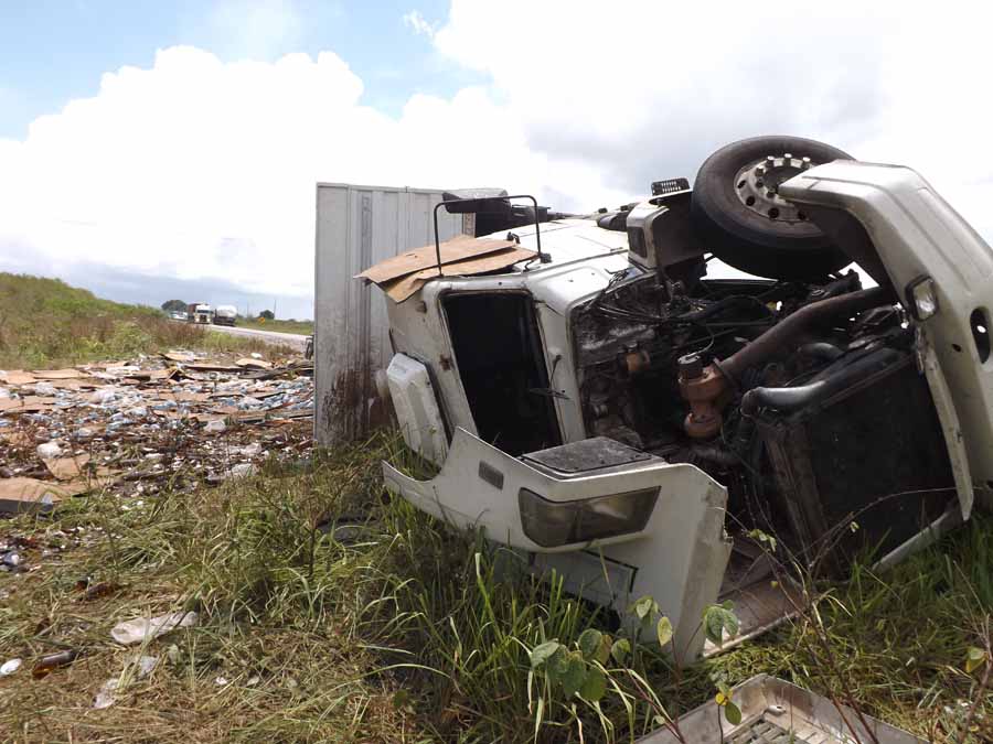 Segundo relatos, o motorista perdeu o controle por alguns segundos indo para o acostamento, que devido a inclinação fez o caminhão tombar. O motorista não se feriu no acidente e a carga foi recolhida por populares.