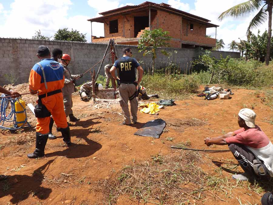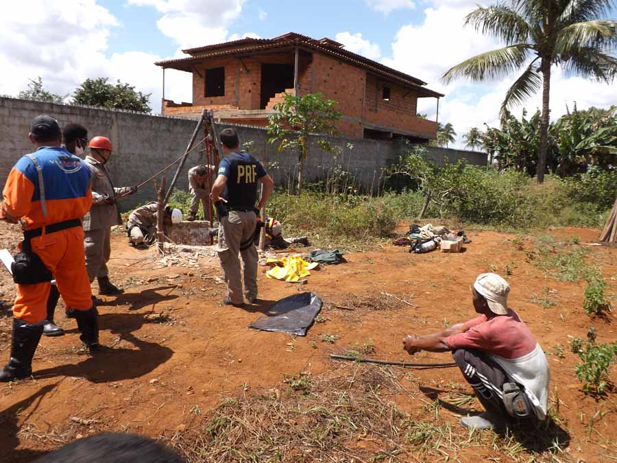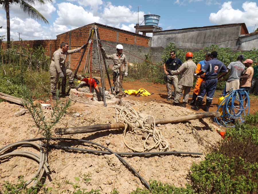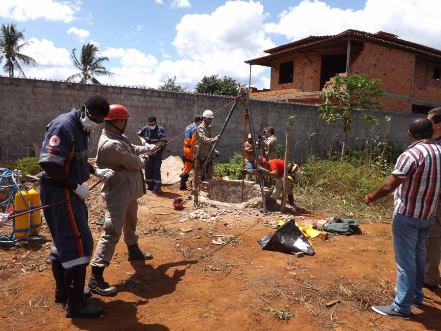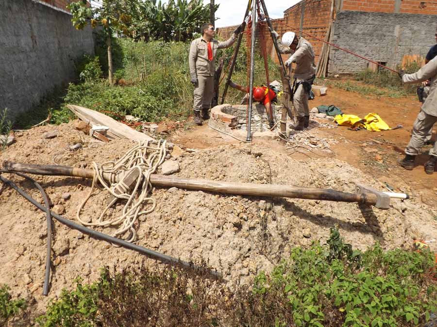 Em uma grande profundidade, cerca de 20 metros, local escuro e sob suspeita de ar contaminado, os bombeiro tiveram de usar cilindros de ar para entras no poço e recolher o corpo.