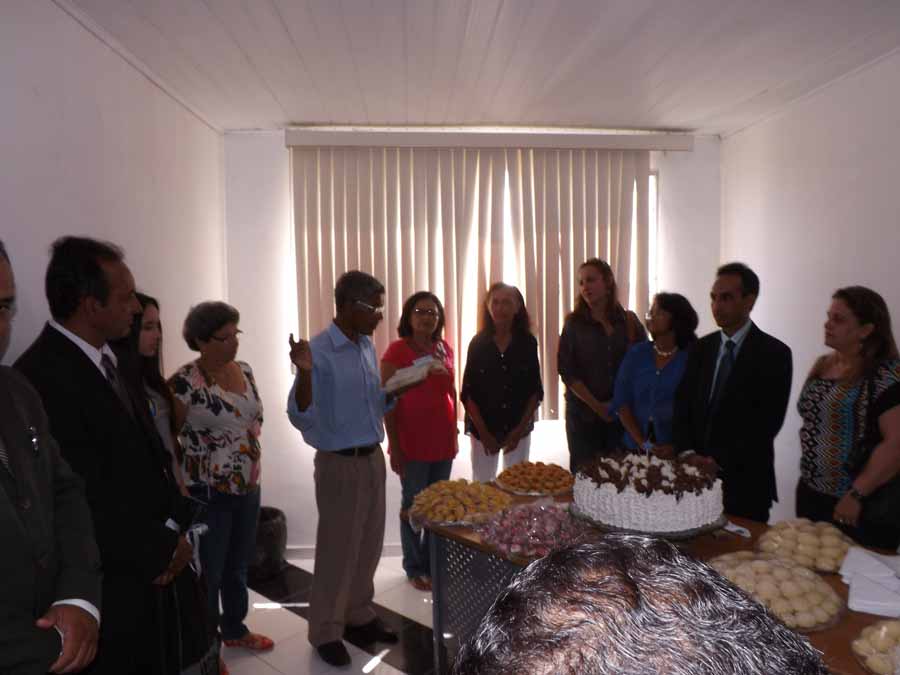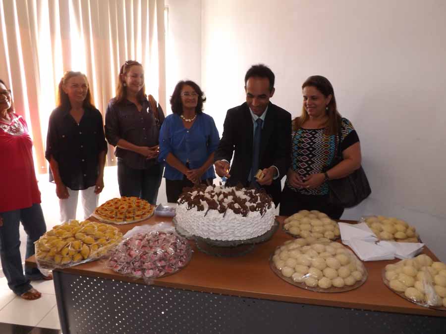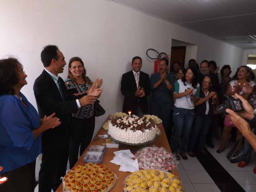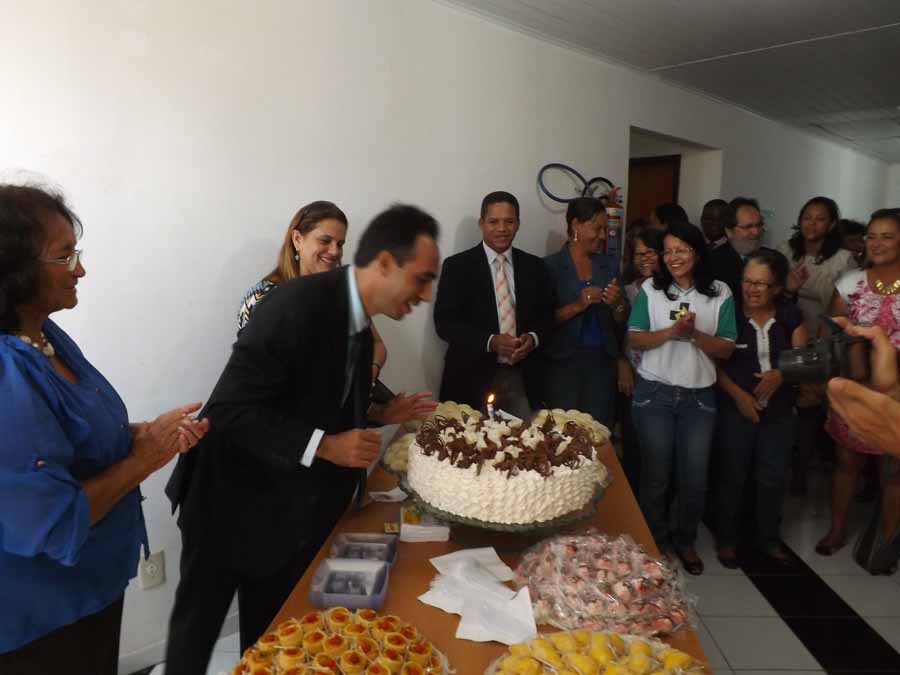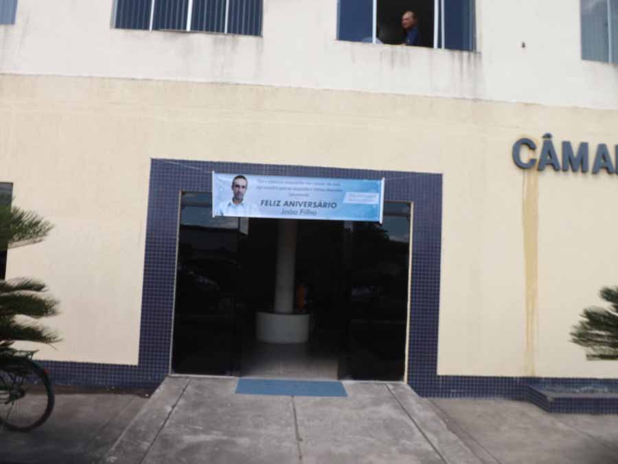 O presidente já foi recebido logo na entrada com uma faixa de aniversario colocada bem na entrada do prédio e no primeiro andar um bolo e a festa montada em sua homenagem.