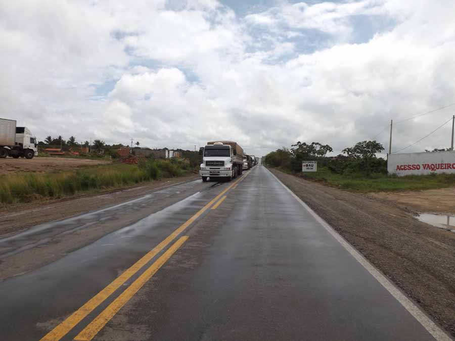 Na manhã desta sexta-feira, 21 de fevereiro de 2014, trabalhadores da Mondial interditaram a BR-101, bem ao lado da fabrica em Conceição do Jacuípe.