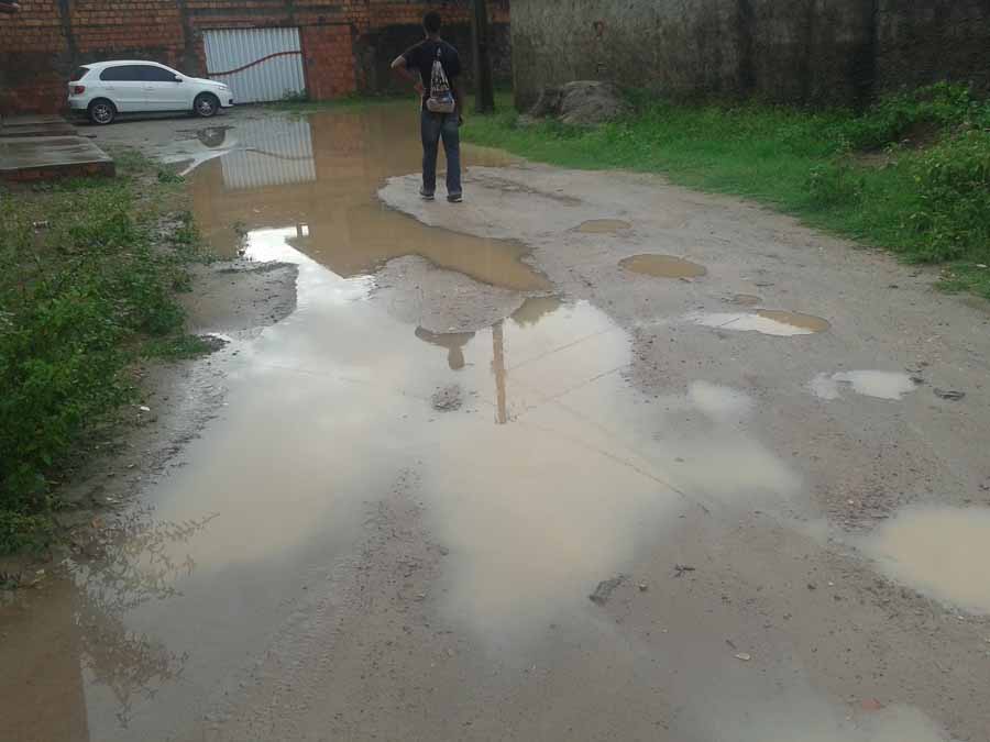 A primeira dificuldade que os moradores passam é justamente a lama, ruas esburacadas tornando quase intransitáveis os locais.