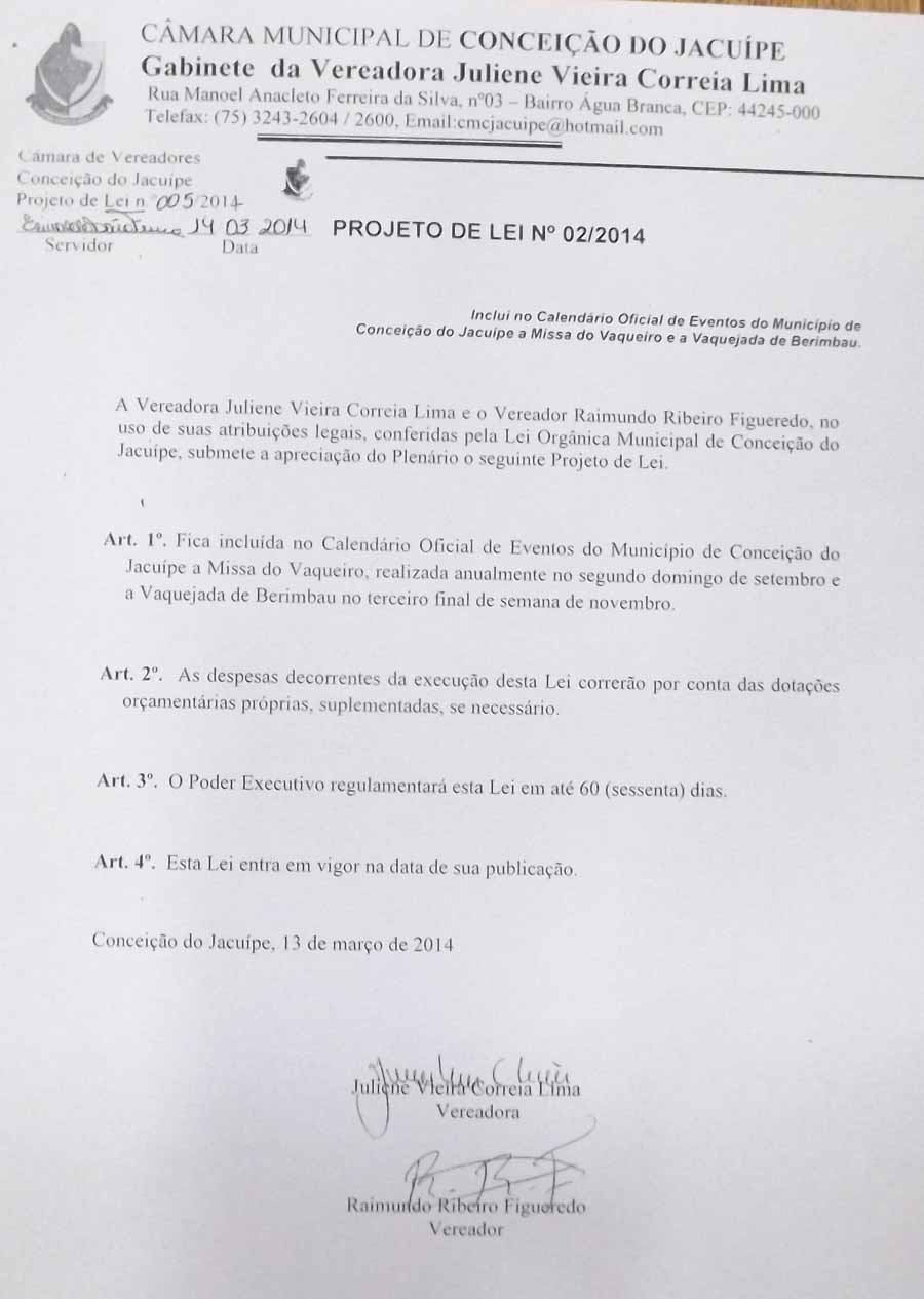Vaquejada e Missa do Vaqueiro de Conceição do Jacuípe irão entrar no calendário de festas.