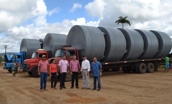 O primeiro lote com mais de 2.000 cisternas em polietileno com capacidade para 16 mil litros de água, destinada pelo programa “Água Para Todos” do Governo Federal, começaram a chegar na manhã dessa terça-feira (01/04/14), em Coração de Maria.