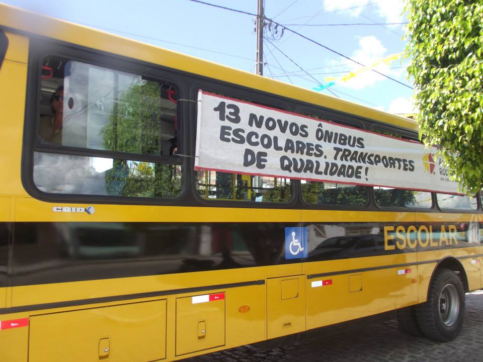 Ônibus escolares, patrol, caminhão, ambulância, vans, entre outros, estavam na carreata que percorreu as principais ruas da cidade comprovando o trabalho da gestão municipal.
