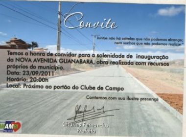 peças feitas pelo prefeito. “Até mesmo a inauguração de um sanitário